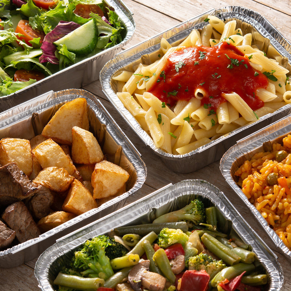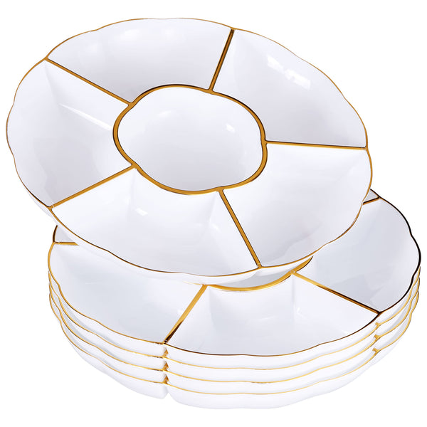 Gold Rimmed Plastic Serving Trays with 6 Compartments