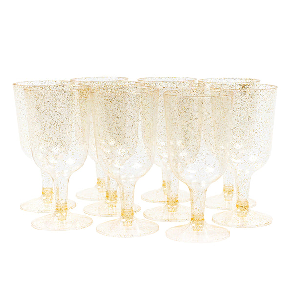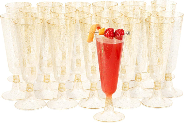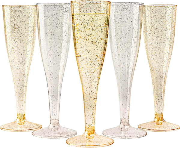 Gold Glitter Plastic Champagne Flutes (150ml)