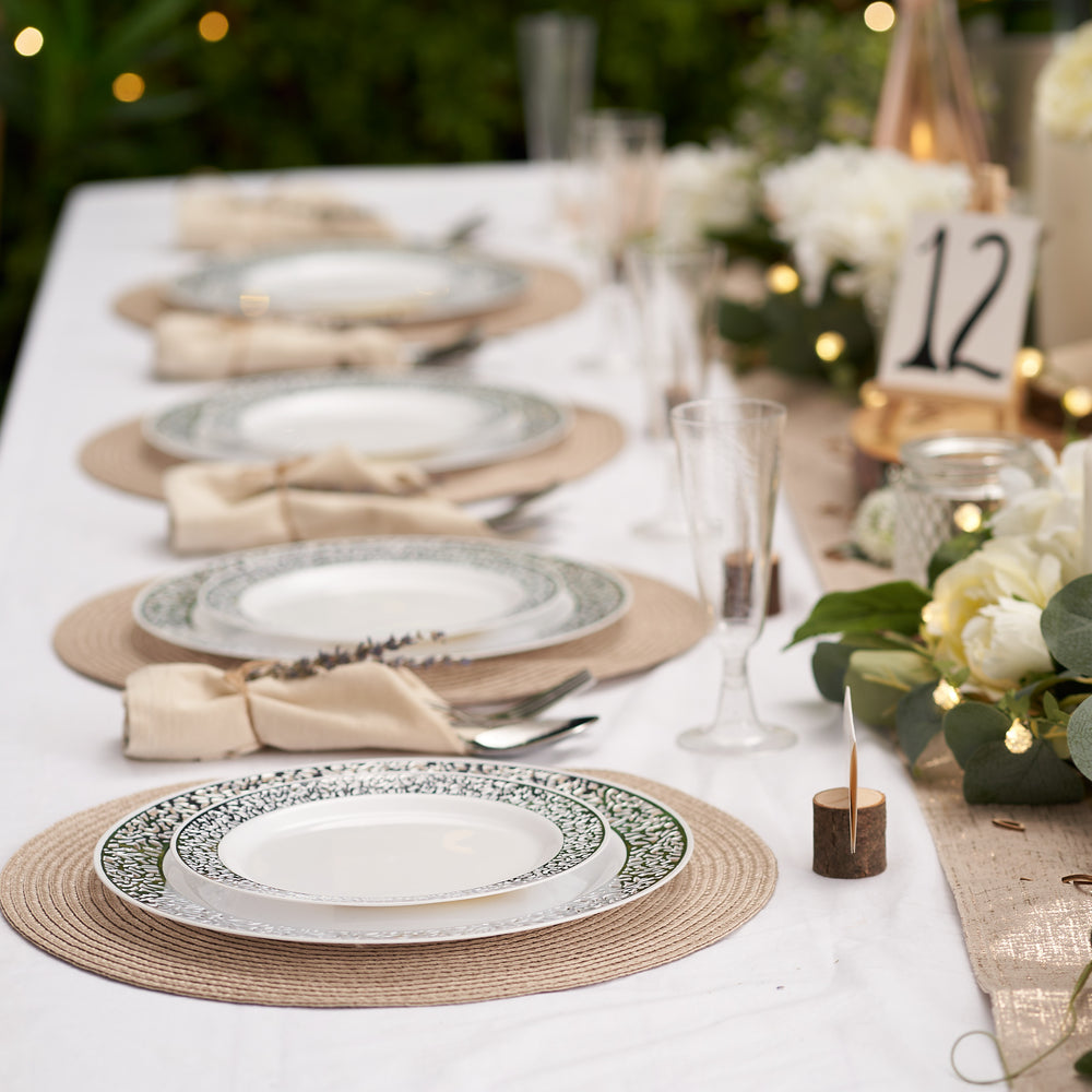 Reusable Plastic Silver Lace Rim Dinner & Dessert Plate Set