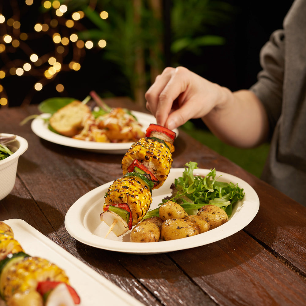 Reusable Plastic Dinner Plates with Gold Pattern (25cm)