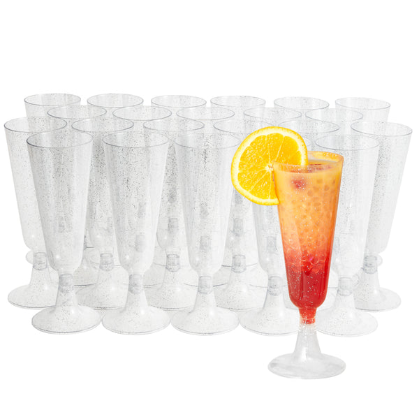 Silver Glitter Plastic Champagne Flutes (150ml)