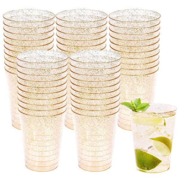 Gold Glitter Plastic Double Shot Glasses (60ml)