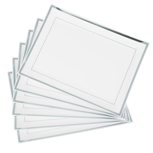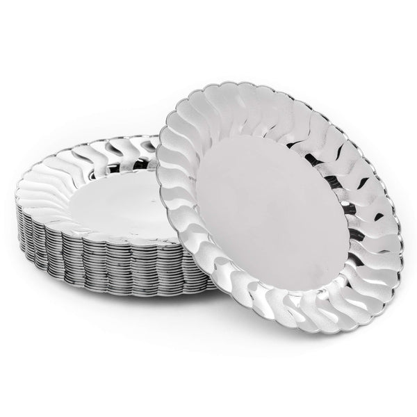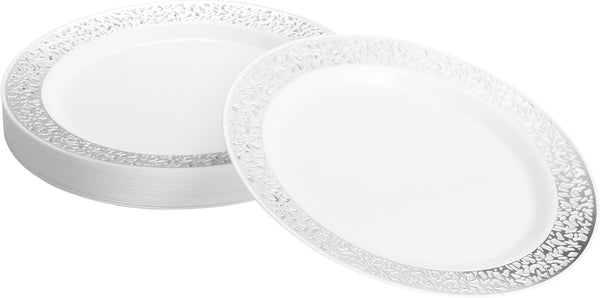 Reusable Plastic Plates with Silver Lace Rim Detail (26cm)