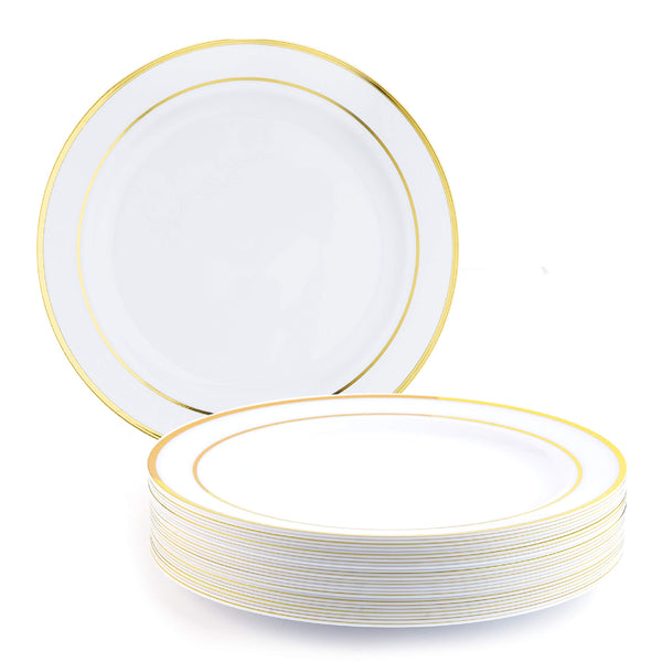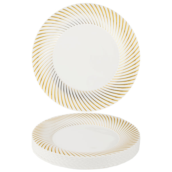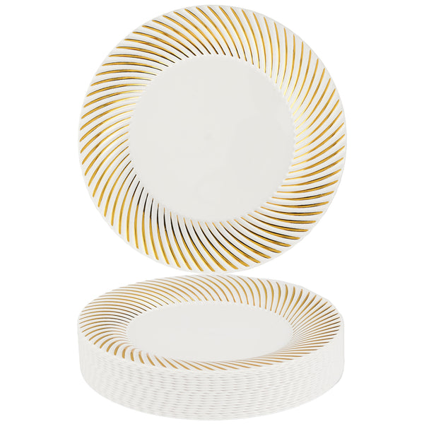 Reusable Plastic Dinner Plates with Gold Ripple Rim (26cm)