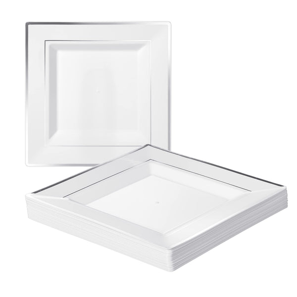 Square Multi-Use Plastic Silver Rim Plates (24cm)