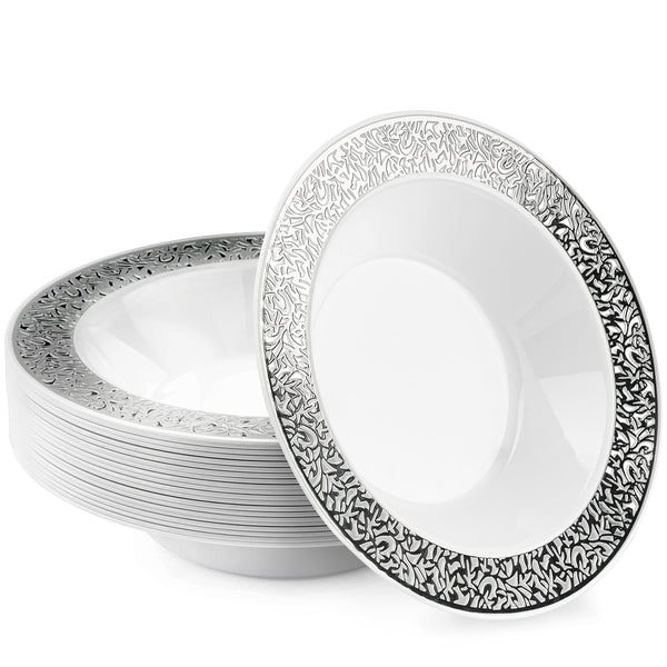 Reusable Plastic Party Bowls with Silver Lace Rim (18cm)
