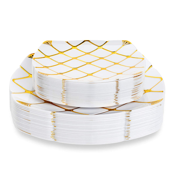 Multi-Use Gold Ripple Rim Plastic Plate Set