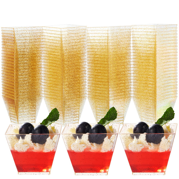 Reusable Plastic Gold Glitter Dessert Pots (60ml)